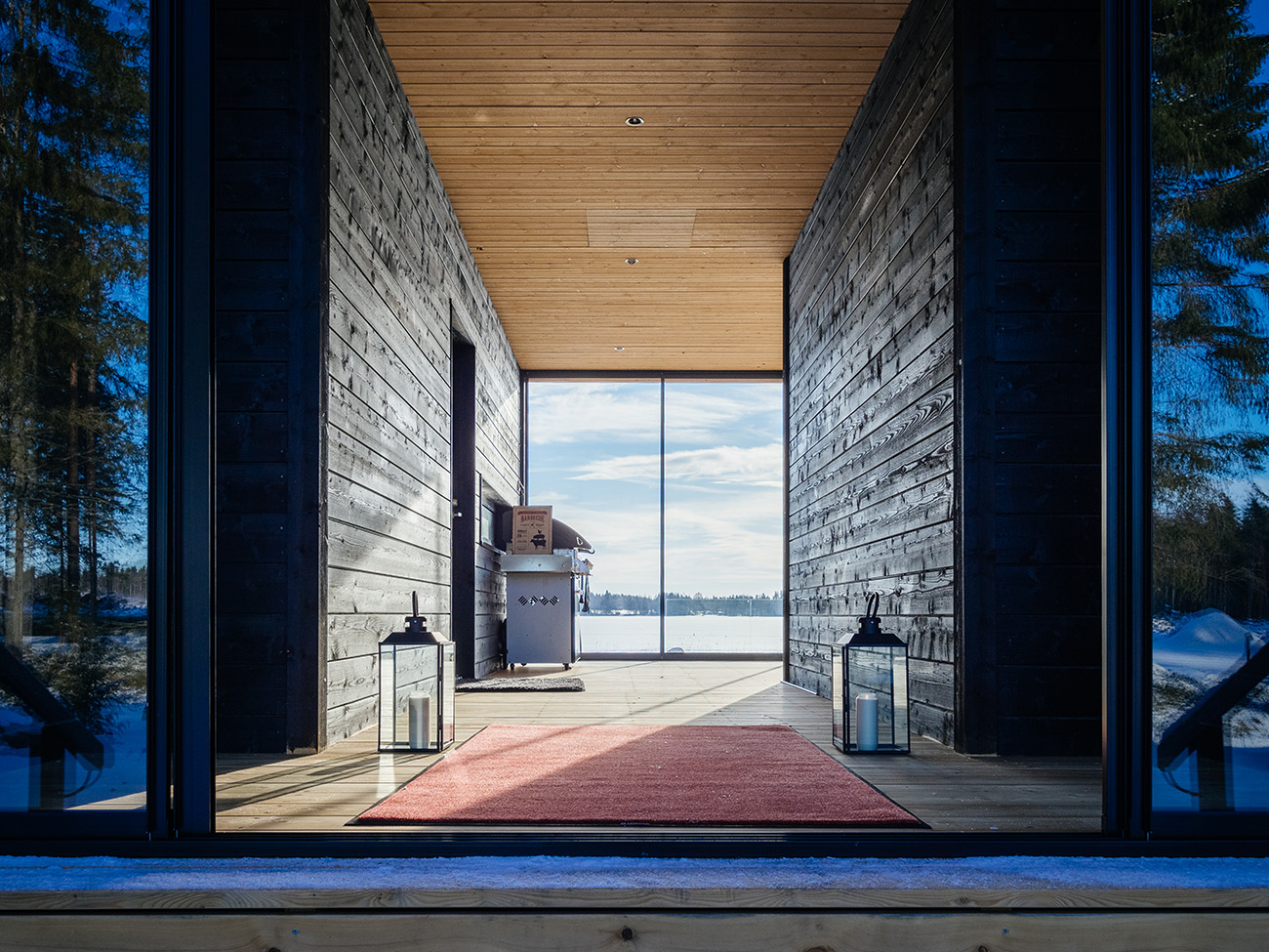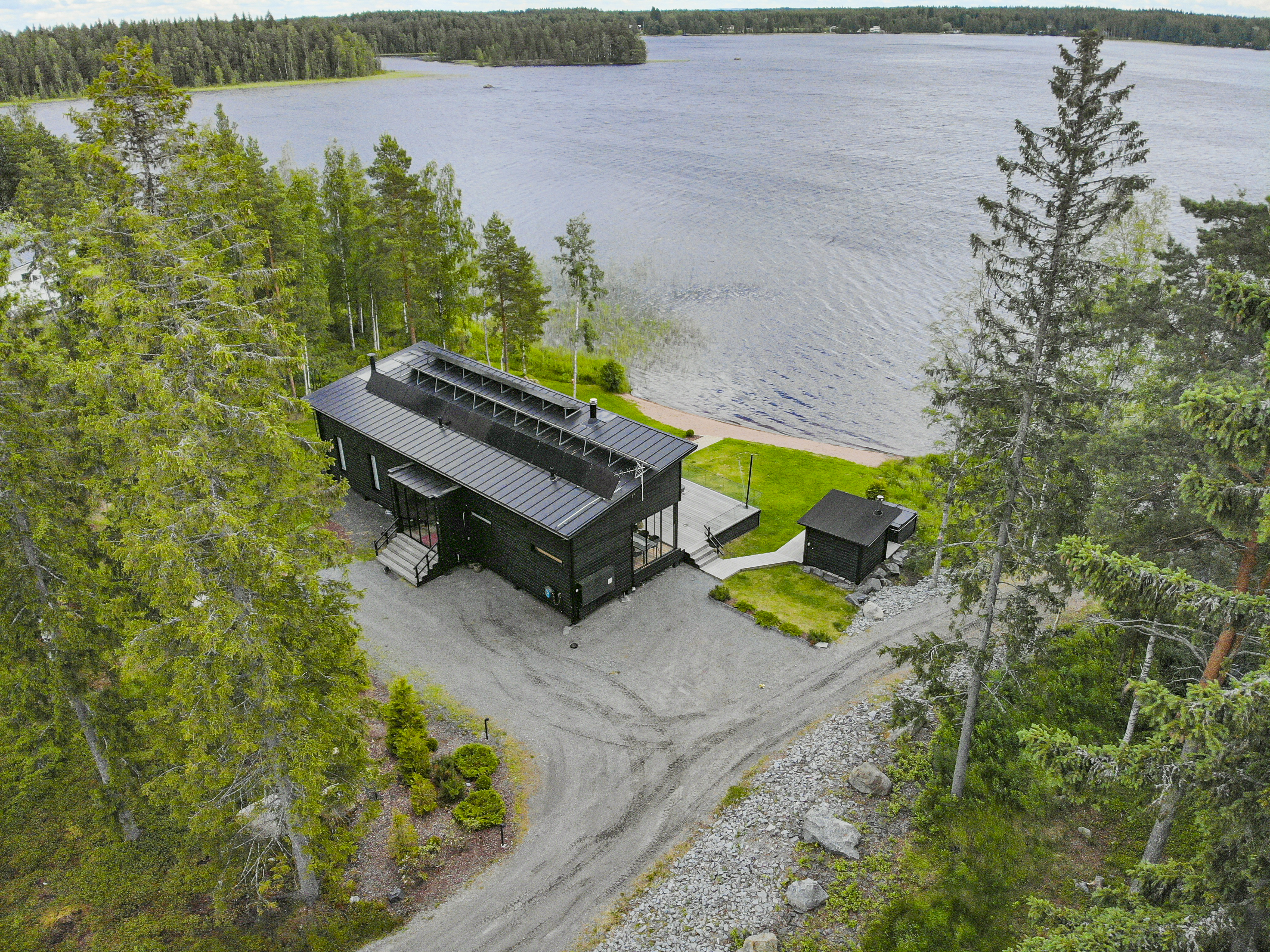 Tummiin pukeutunut Villa kutsuu vieraakseen niin yritykset kuin yksityishenkilötkin: viileän tyylikkään designin ja lämpimän puun yhdistelmä takaa viihtyisän ympäristön niin kokousvieraille, juhlaväelle kuin rentoutujillekin.